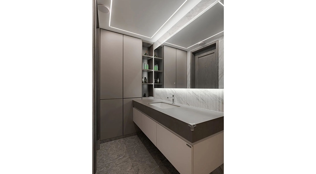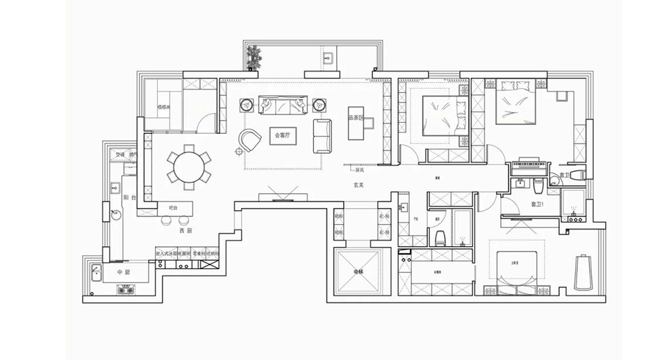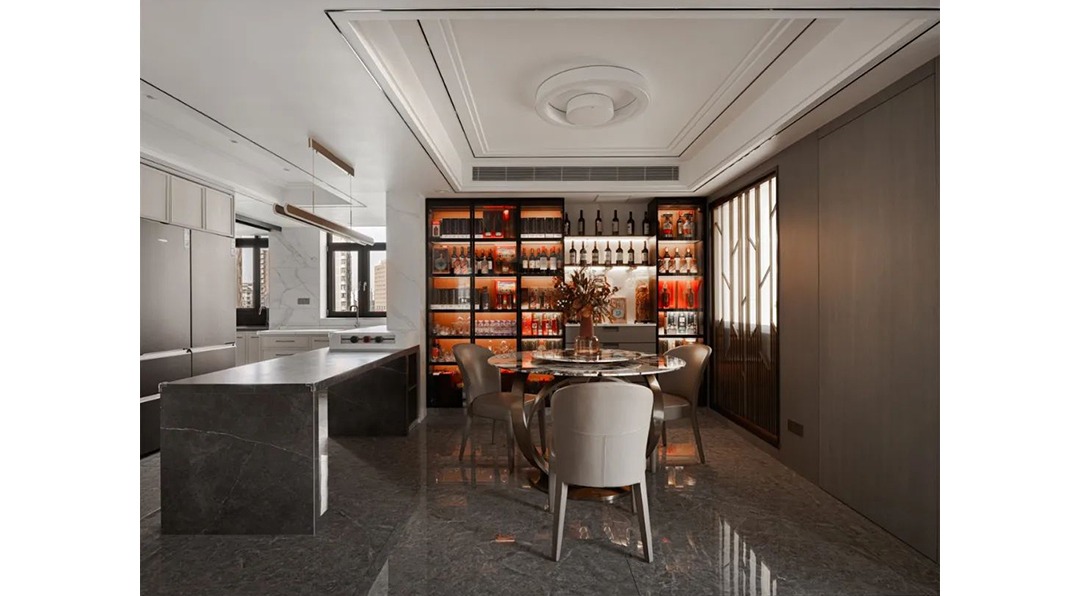 本案为坐落于古北的一套建面200平米的大平层住宅,屋主为一对中年企业高管及他们的女儿三口人入住。