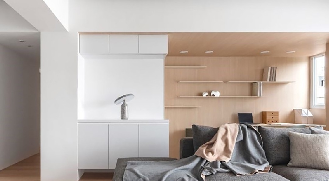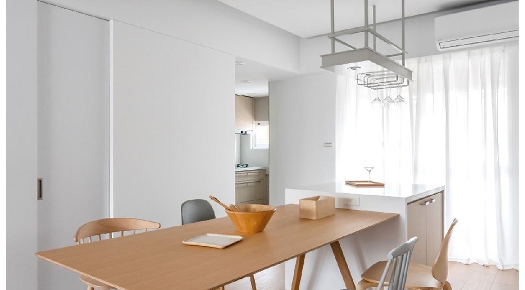 房屋原本的装修比较繁重,遮蔽了光线,让整个空间显得非常压抑。在重新整顿格局后,取消过度装饰,赋予老屋北欧风新生命。设计师利用白色与木质自然的纹理,形成空间中的两种色系,赋予现代治愈氛围。