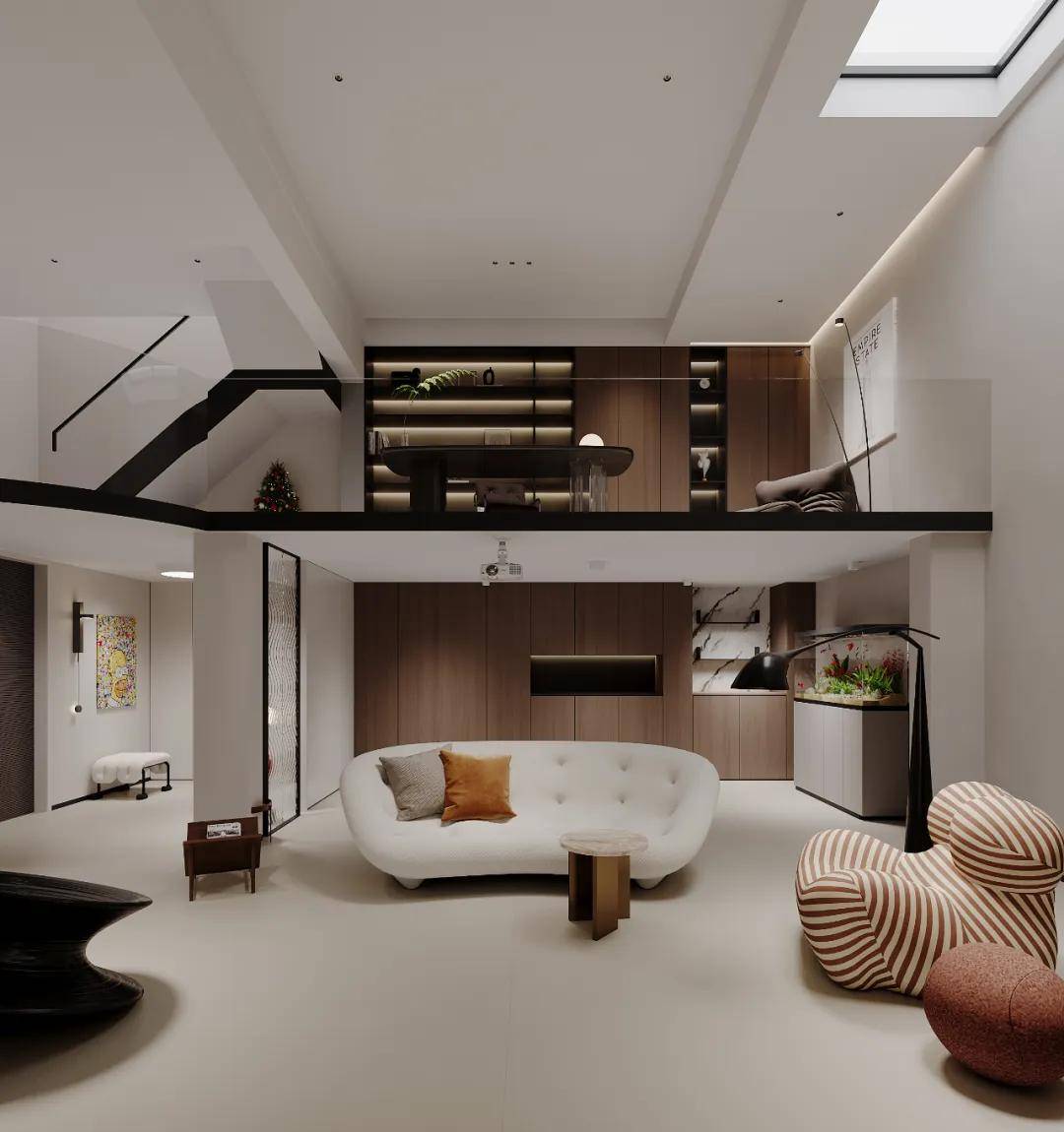 当晨曦温柔地穿透天井的缝隙,斑驳光影在客厅的每一寸空间轻盈起舞,家的温馨在那一刻悄然绽放。夜幕低垂,地下室化作光影的魔法屋,荧幕与灯光交相辉映,点亮了属于夜晚的无限遐想,一日的辛劳在此刻卸下。